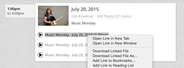- To download the file, right click (or control + click) on the audio player, and select "Save link as" or "Save file as".